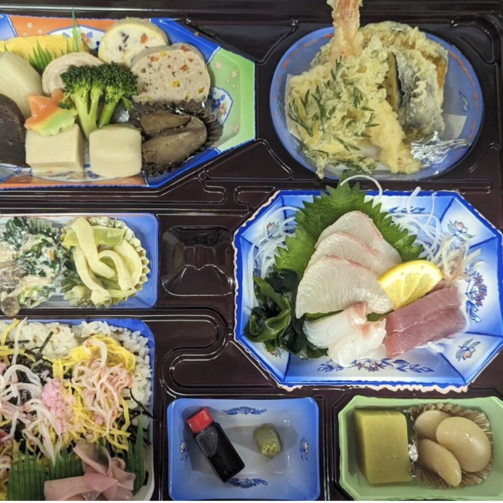五島市内の人気店、「寿司冨」様と提携し、宿で楽しめるお食事をスタートしました。(写真は3000円のお料理です)